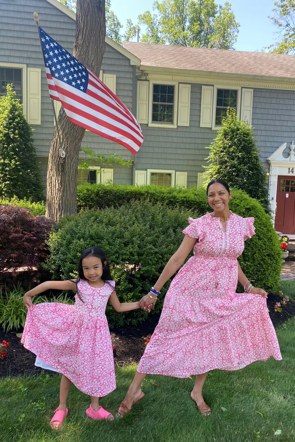 Charming and comfortable, this little girls’ dress is made from soft voile cotton with a beautiful hand-block print. Perfect for twirling, it features a playful design that’s as stylish as it is breathable, making it ideal for sunny days and special Mommy and Me moments.